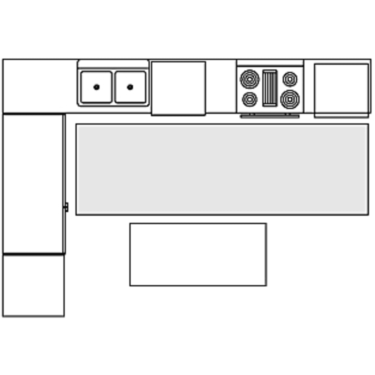 For galley kitchens, L-shaped kitchens, or kitchens with an island, place a decent-sized runner along the longest side of your cabinets. This way, you cushion most of your steps and protect your tiles or hardwood floors from being banged up by the occasional knife drop.