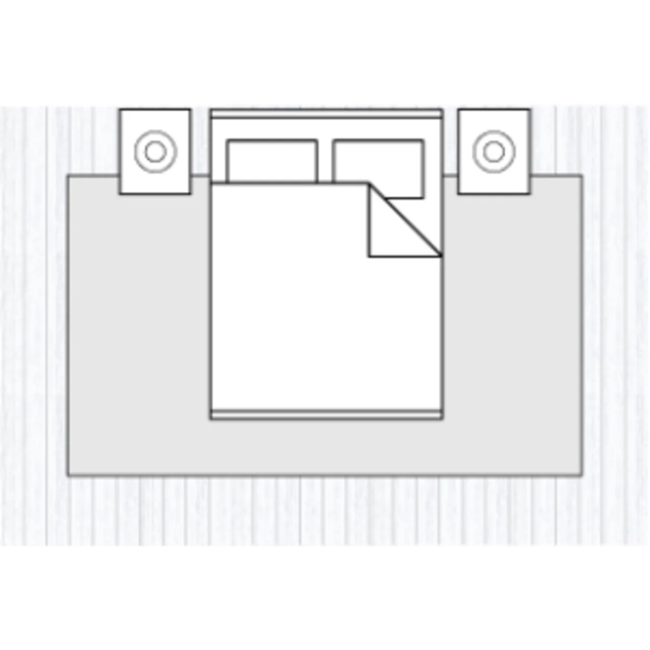 Bedroom (King Bed) | 8' x 10' → 9' x 12' | Extend the rug beyond both nightstands for a luxurious frame around the bed. |