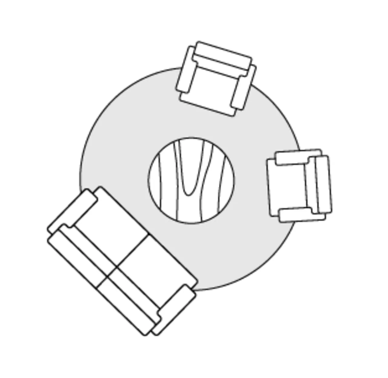 Try a uniquely shaped rug like a round or organic-shaped rug design to soften lines and add visual intrigue to living rooms or sitting areas. Follow the link below to learn more about irregular or organic shaped rugs.