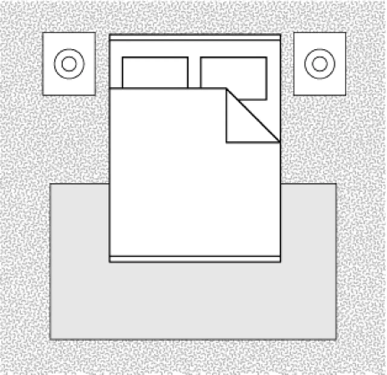 If the room is smaller or the rug is not large enough to hold all furniture pieces, tuck the rug under the bed just up to the nightstands.