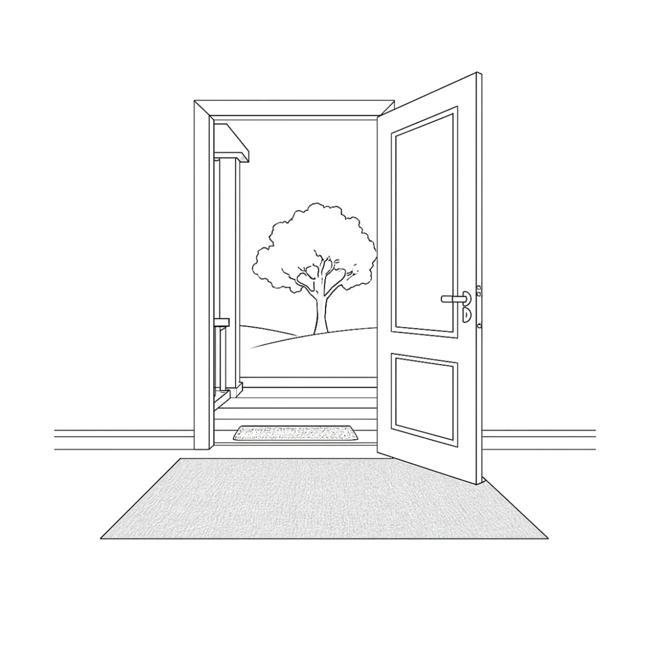 Always measure door clearance and determine the pile height of your rug so the door can open freely over the rug. If opening the front door does not allow for a rug, center a rug in the space or lay it in front of a foyer bench or table.