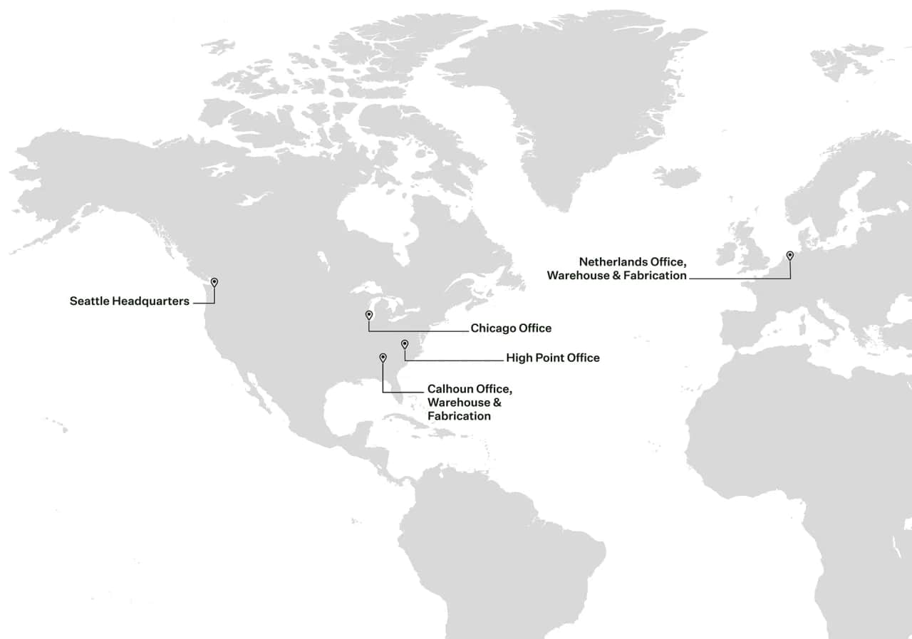 With offices in Seattle, Chicago, and the Netherlands, we offer the same dedicated and high-quality service across the globe. We are always available to support you for all your projects, whether hospitality, retail, office, or residential.